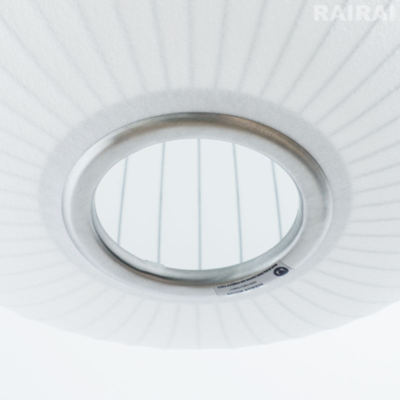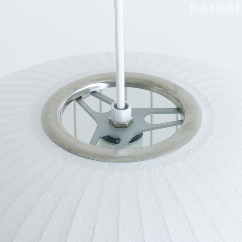 シェードの素材はその質感から紙のようですが、ひとつひとつ手作りで特殊なプラスチックの繊維を、細いスチールフレームの骨組にスプレーでコーティングして作られています。若干の弾力があります。シェードの汚れがひどい時には、柔らかい布を薄めた中性洗剤に浸し、よくしぼってから拭き取り、乾いたら柔らかい布で乾拭きしてください。
