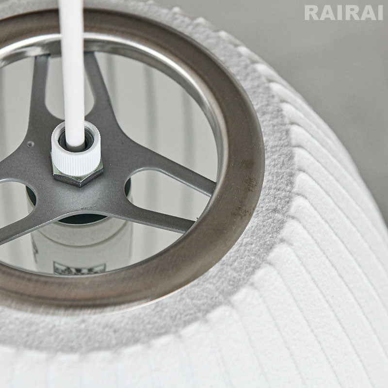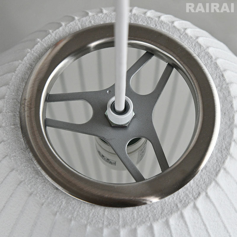 シェードの素材はその質感から紙のようですが、ひとつひとつ手作りで特殊なプラスチックの繊維を、細いスチールフレームの骨組にスプレーでコーティングして作られています。若干の弾力があります。シェードの汚れがひどい時には、柔らかい布を薄めた中性洗剤に浸し、よくしぼってから拭き取り、乾いたら柔らかい布で乾拭きしてください。 |