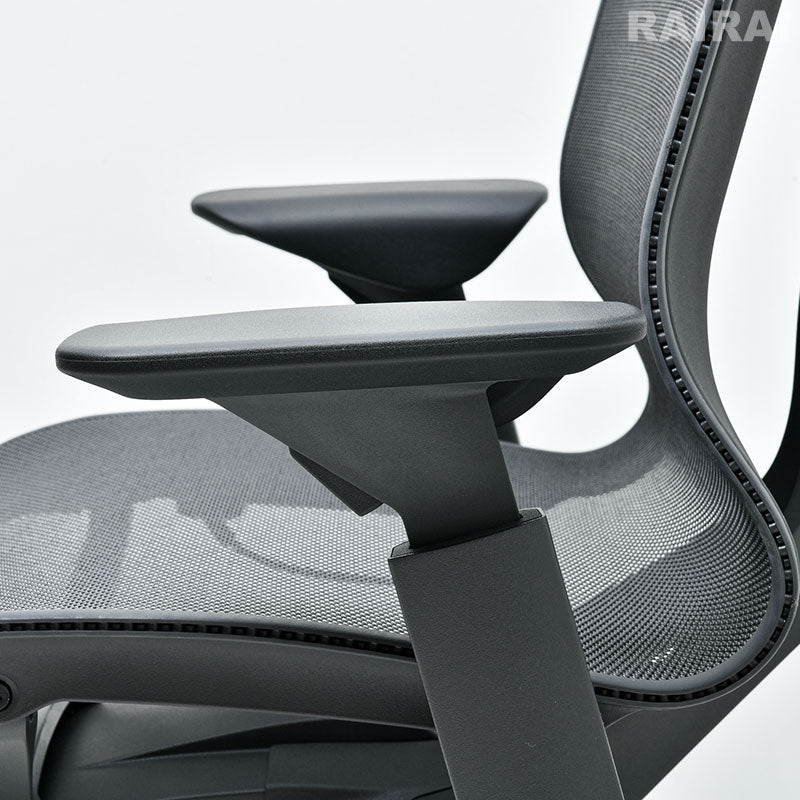 通気性があり、一定の温度を保つ、エラストマーサスペンションは、座面と背もたれとの間の隙間を取り去った繋ぎ目のない形状で、ダイナミックに背骨をサポートして、座る人の身体にフィットします。