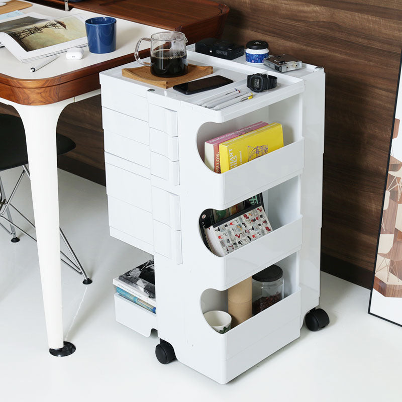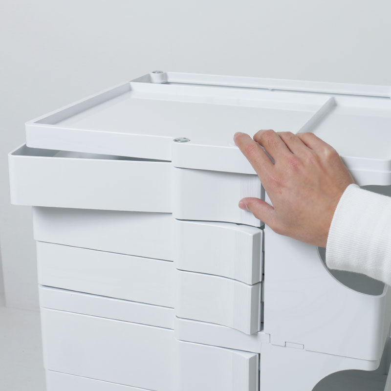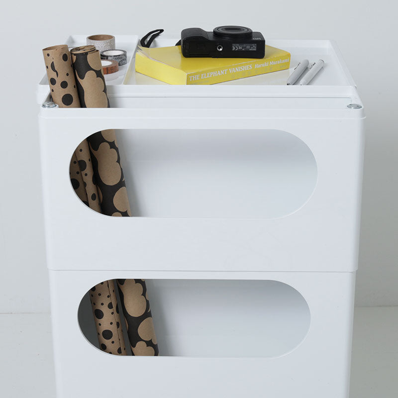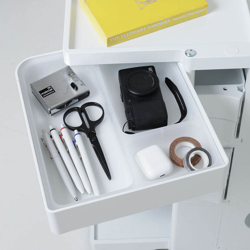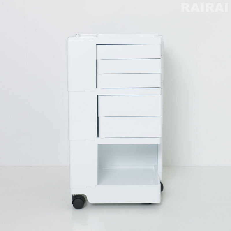 ボビーワゴンは、キャスター付きの本体を回転させることで側面4面すべてを効率的に使える、デザイン性と機能性に優れた収納家具です。