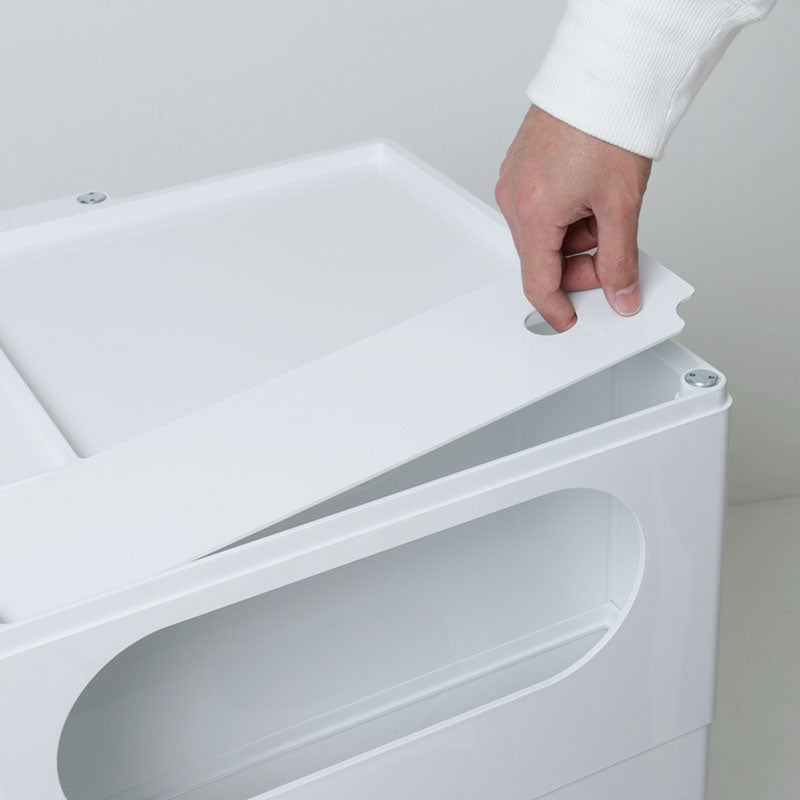180°回転するトレイや、ボトル類の保管に適した奥行きのあるポケットなど、機能性に富んだ収納スペースが随所に工夫されています。ABS樹脂製で汚れの拭き取りも簡単。