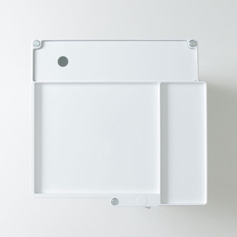 トレイはワンプッシュで簡単に開閉できます。最大で約180度回転し、収納物が取り出しやすい構造です。 |