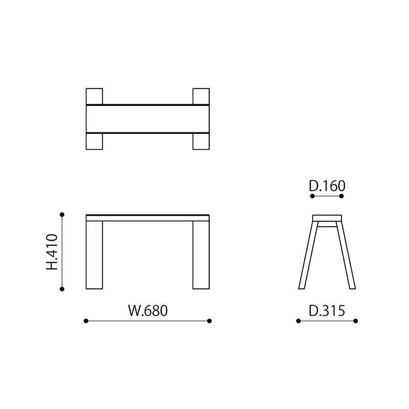 幅が広く奥行きが狭いサイズなので、小物を置いて棚として使ったり、リビングや玄関に置いてちょっとした腰掛けに使うこともできます。 |